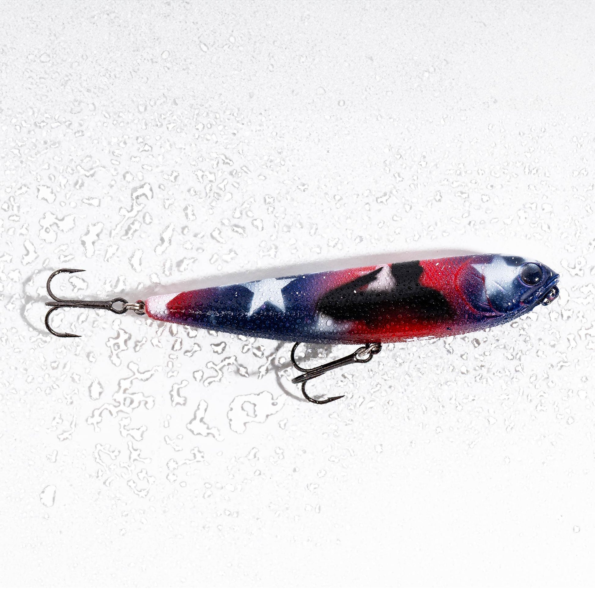 Bold, rare, and hand-crafted—this limited edition Jekyll Red White & Blue Custom Topwater Bait is more than just a fishing lure. It's a collector’s piece.