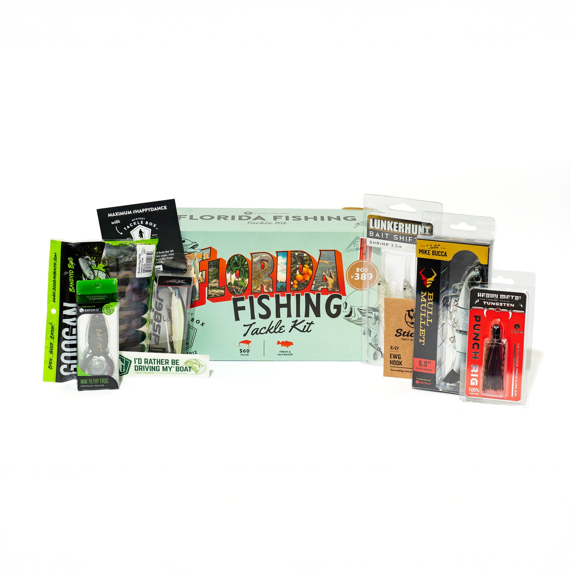The Florida Fishing Tackle Kit is packed with BOTH freshwater and saltwater lures curated specifically for fishing Florida waters. Rip open a Florida Fishing kit to discover premium quality baits from the best brands in fishing.